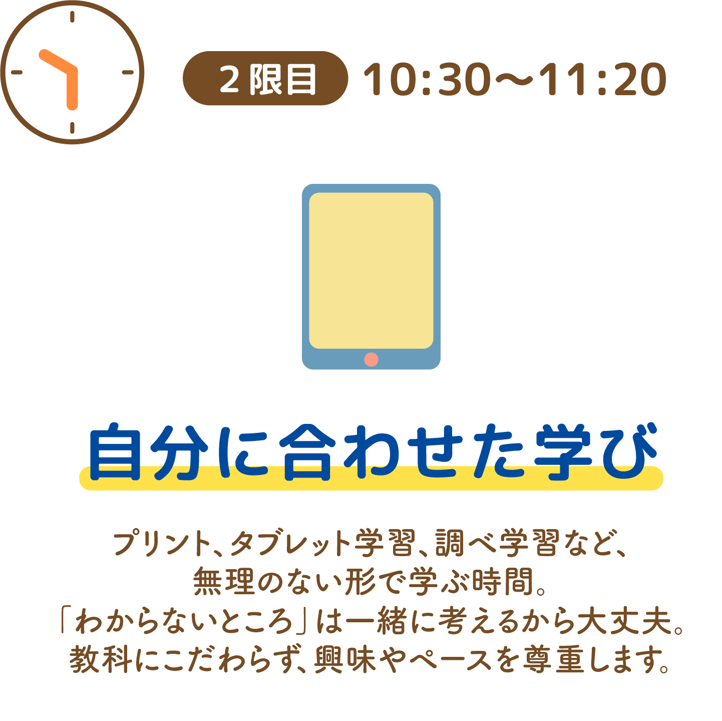 問題ありません。無理に勉強を進めることはせず、必要に応じて読み書き・計算などの基礎から丁寧にサポートします。